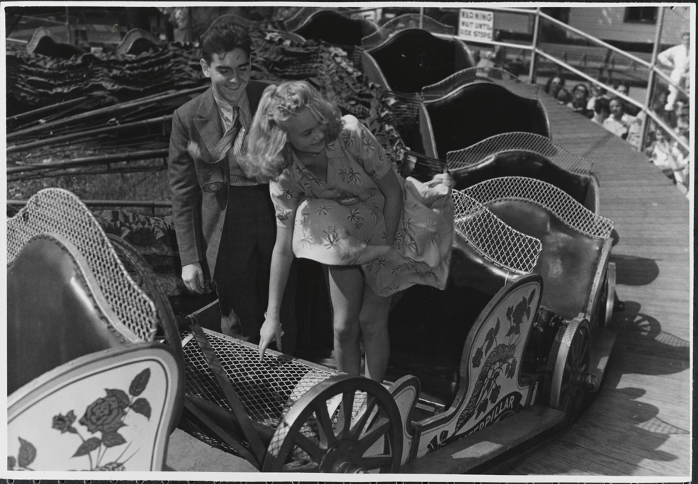 Tilgins. Couple on Caterpillar ride at Coney Island amusement park. Museum of the City of New York. 90.36.4.9