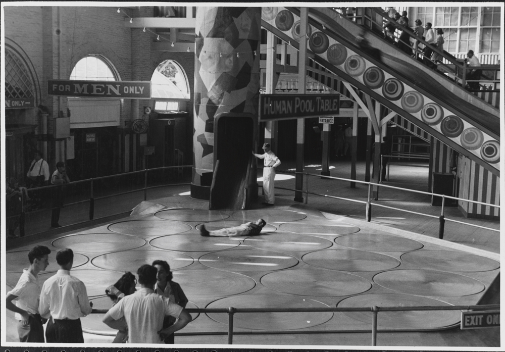 Tilgins. Human Pool Table ride at Coney Island amusement park. Museum of the City of New York. 90.36.4.14