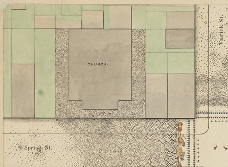 Inset, Map of Intersection of Spring Street and Varick Street, ca.1850, in the J. Clarence Davies Collection. Museum of the City of New York. 29.100.2984.
