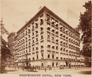 Beginning in 1879 and continuing until 1890, Whitman offered lectures commemorating Lincoln’s assassination. In spite of his failing health he traveled from his home in New Jersey to Massachusetts, New York, Maryland, and Pennsylvania to deliver the “Death of Lincoln” lecture. On April 14, 1887, Whitman spoke at Madison Square Theatre. Among those in attendance, noted by the New York Times in an article published the following day, were Andrew Carnegie, Augustus St. Gaudens, Frances Hodgson Burnett, James Russell Lowell, and John Burroughs. Afterward, Whitman held a reception for his friends at the Westminster Hotel. The evening netted $600 for Whitman, roughly the equivalent of $14,000 today.