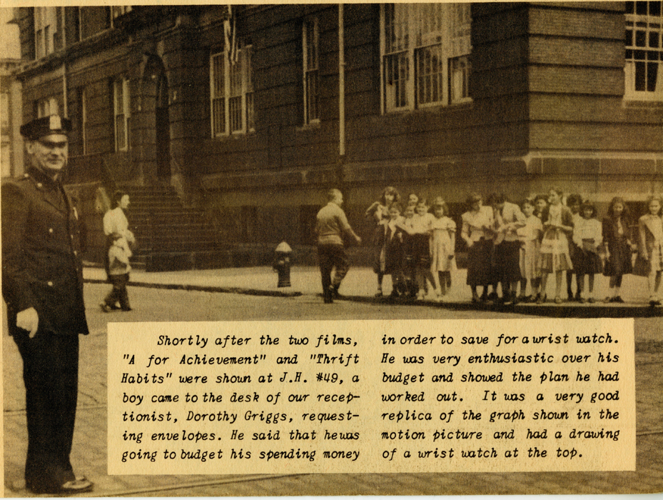 Officer Kronzak is pictured to the left in “The ‘Wick,” a publication of the Bushwick Savings Bank, the same bank mentioned in the excerpt above. The bank remains standing on the corner of Graham and Grand and though the stone facade still bears the name “Bushwick Saving Bank,” it now houses a Chase bank.