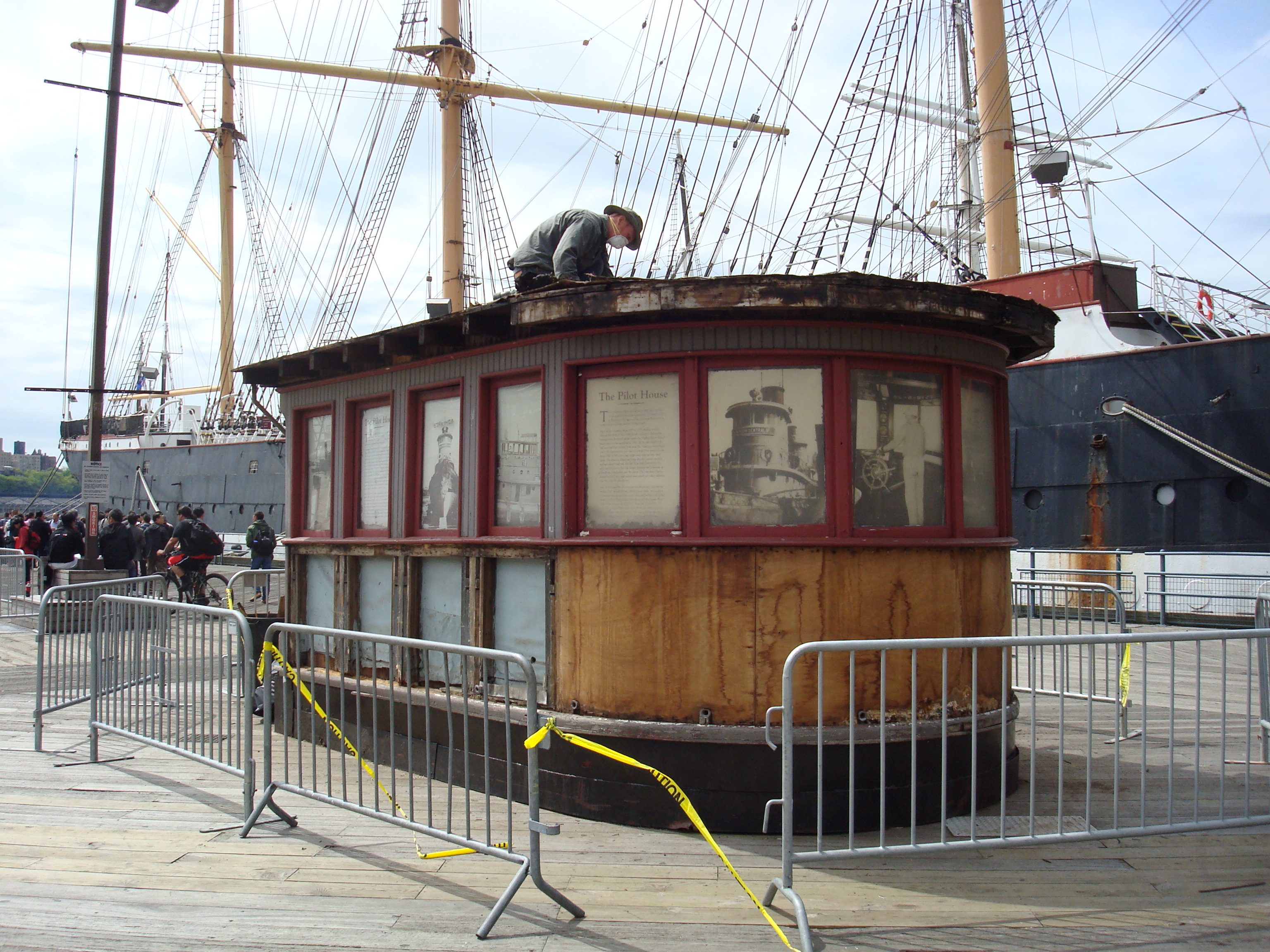 Long a fixture on Pier 16, the pilot house had not been restored since 1989. When the Museum of the City of New York took over operations at the Seaport Museum, it was clear that the time had come for some preservation work, as the harsh weather conditions on the waterfront had damaged the structure.