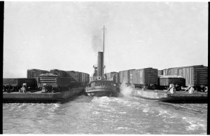 In the late 19th and early 20th centuries, cargo containers coming into New York Harbor were loaded from ocean-going vessels onto large barges with railroad tracks on the deck. Vessels like the steam tugboat New York Central No. 31 (built in 1923 for the New York Central Railroad) moved these barges between rail yards so that the containers could be attached to trains headed to the rest of the country.