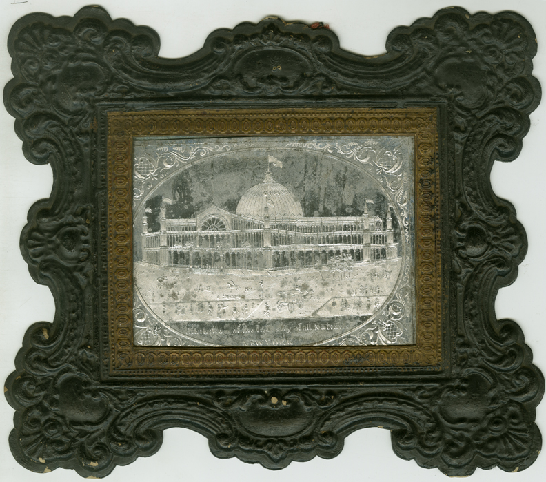 Souvenir plaque of the Exhibition of the Industry of all Nations, New York, 1853-1854, in the Ephemera Collection. Museum of the City of New York. 43.118.14.