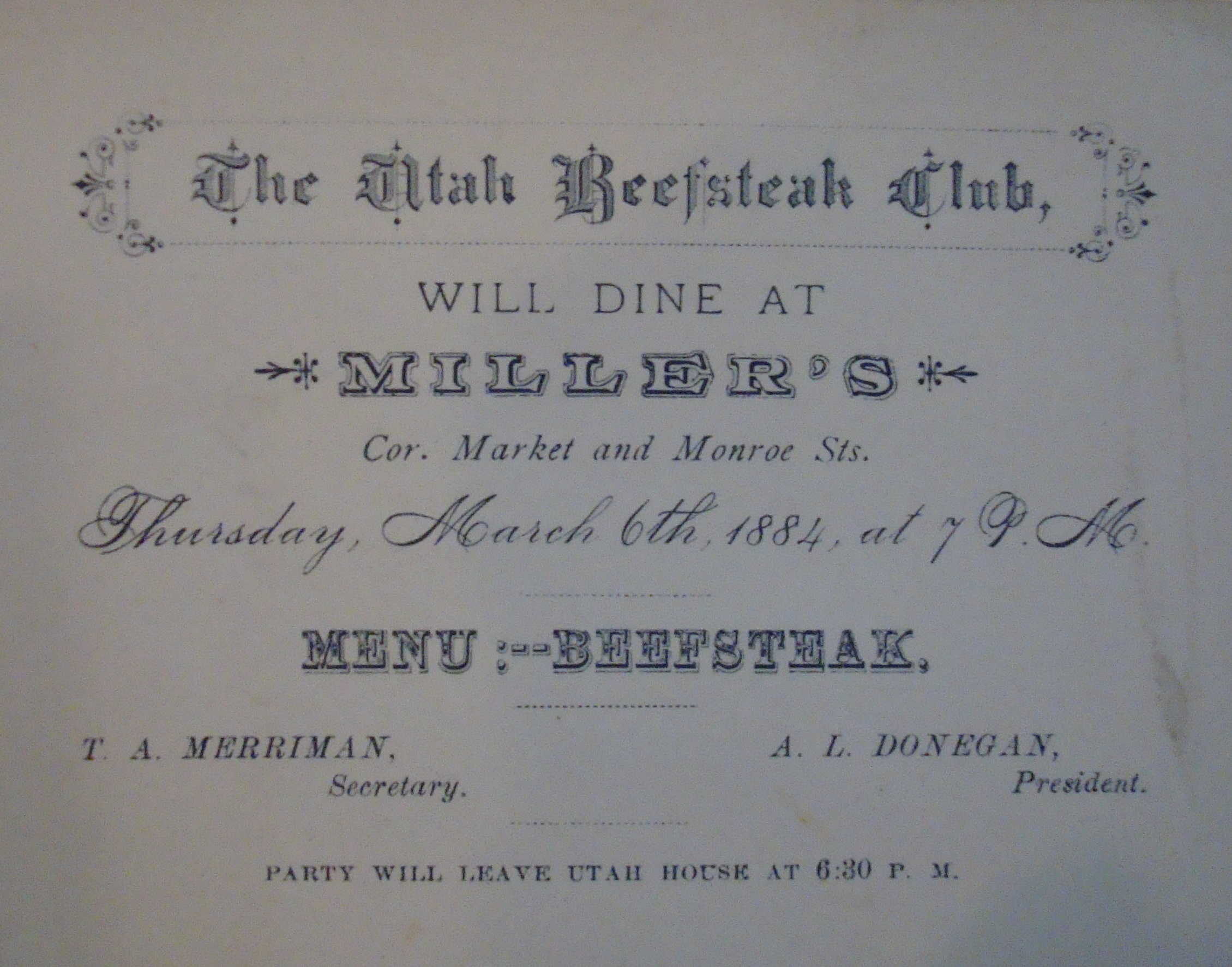 Included in the collection are letters to William Miller from business leaders, club presidents, and individuals requesting his preparation of Beefsteak Dinners. One 1894 invitation from Miller himself invites members of an organization to “the enjoyment of Beefsteak and Ale, to be prepared and devoured in old original style.”