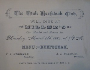 Do you remember several years ago when some New York restaurants actually had their patrons dining on beds? That short-lived phenomenon is just one of many dining fads that have come and gone over the years. The William S. Miller Papers housed at the South Street Seaport Museum Library and Archives provides a glimpse into one fad that experienced a heyday in New York City and other cities across the country from the mid-nineteenth century through World War I: The Beefsteak Dinner, or “Beefsteak.”