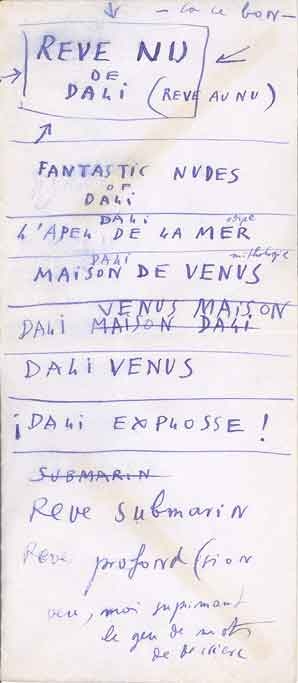 List of titles on St. Moritz Hotel envelope, “Dream of Venus” pavilion for Amusement Zone, ca 1939. Queens Museum of Art. Jean Farley Levy and Julien Levy Estate, partial gift of Eric Strom, 2004.2.15.