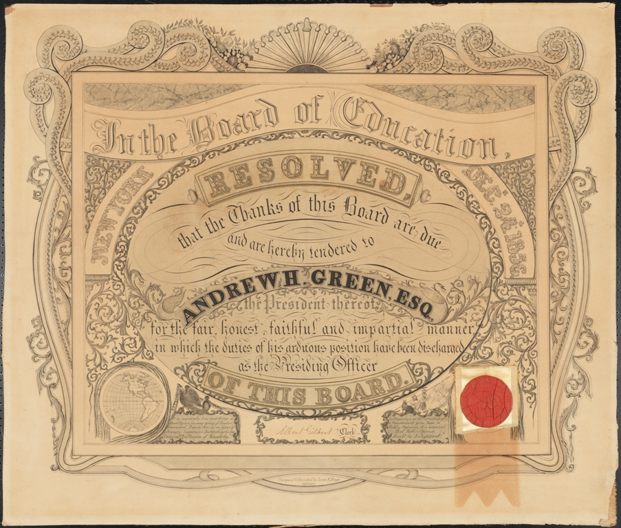 Andrew Haswell Green was born in Worcester, Massachusetts in 1820. He moved to New York City at the age of 15, where he worked as an errand boy, before eventually making his way through law school to became a partner in Samuel J. Tilden’s law firm. Perhaps inspired by Tilden, it was during this time that he began his lifelong quest for the betterment of New York City with a position on the Board of Education in 1855; three years later he was the president of the Board. He had found his passion.