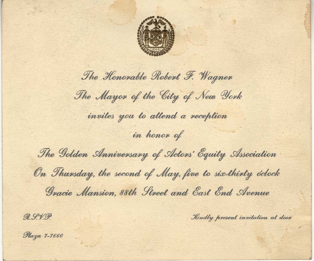 Invitation to Equity’s Golden Anniversary reception, 1963. Museum of the City of New York. F2013.50.3