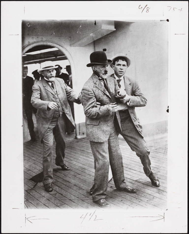 Gaynor is the only New York mayor to have an attempt made on his life. On August 9, 1910, Gaynor was setting off on a much needed vacation on the Europe-bound ocean liner Kaiser Wilhelm der Grosse. He had been posing for photographers and talking to reporters and was still chatting with fellow passengers when a disgruntled, unemployed dock worker, John J. Gallagher, fired three shots at him. What made this even more dramatic is that the immediate aftermath was caught on film. The story goes that William H. Warnecke, photographer for New York World, was running late and setting up just as the other photographers were leaving, allowing him to document the chaos immediately following the assassination attempt.