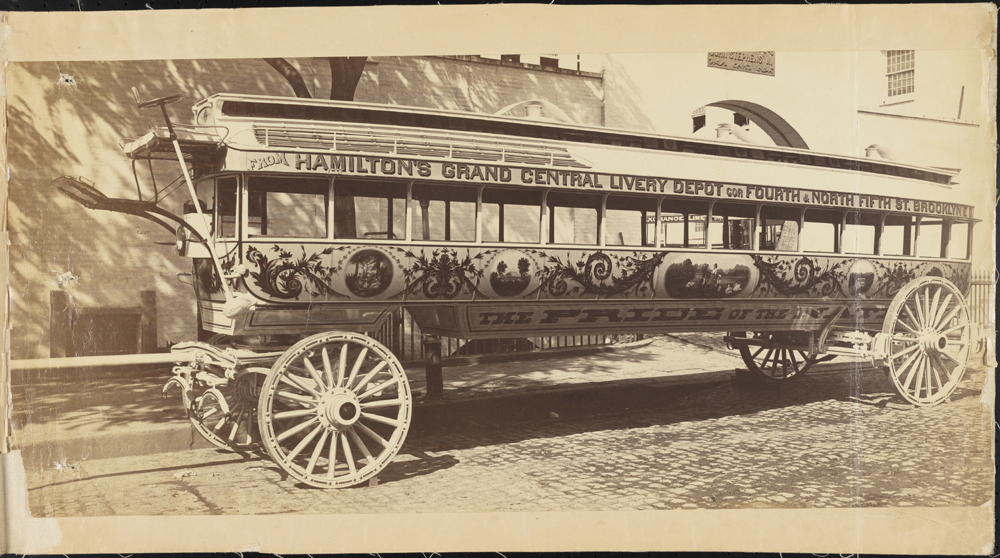 Photograph taken for the John Stephenson Company by unknown photographer. Omnibuses [The Pride of the Nation streetcar.] ca. 1875. Museum of the City of New York. 44.295.13