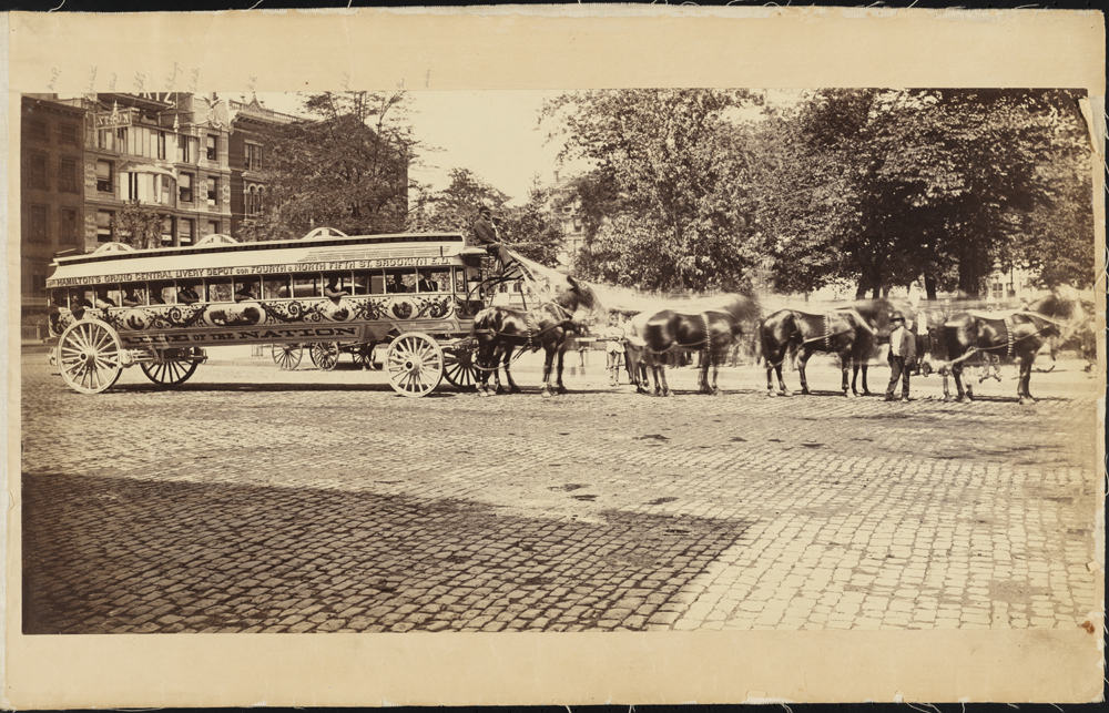 Photograph taken by J. H. Beal for the John Stephenson Company. Omnibuses [The Pride of the Nation streetcar in Madison Square.] ca. 1875. Museum of the City of New York. 44.295.14