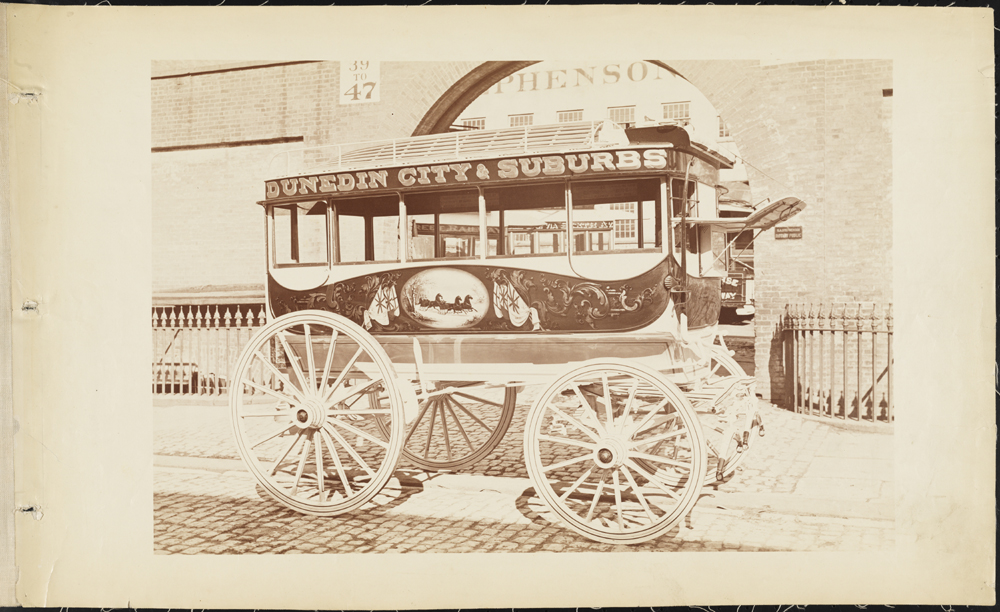 Photograph taken by Waller for the John Stephenson Company. Omnibuses [Dunedin City & Suburbs streetcar.] ca. 1865. Museum of the City of New York. 44.295.2