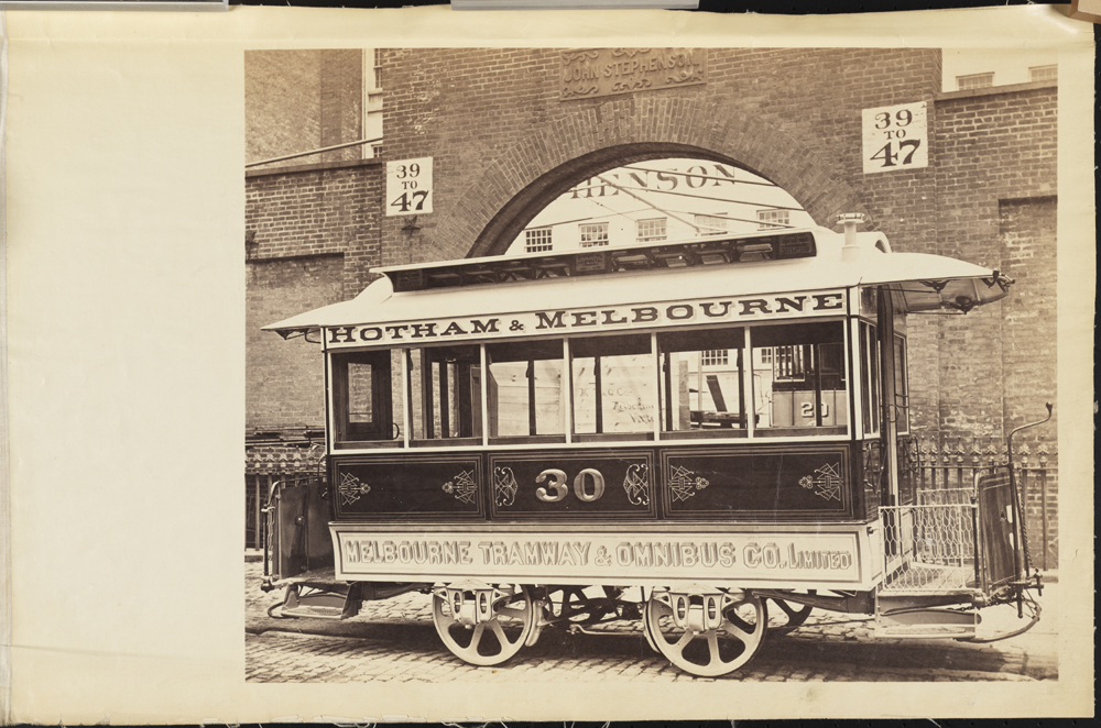 Photograph taken by Waller for the John Stephenson Company. Fare-box Cars [Melbourne Tramway & Omnibus Co. Limited No. 30 Hotham & Melbourne streetcar.] 1884-1898. Museum of the City of New York. 44.295.28