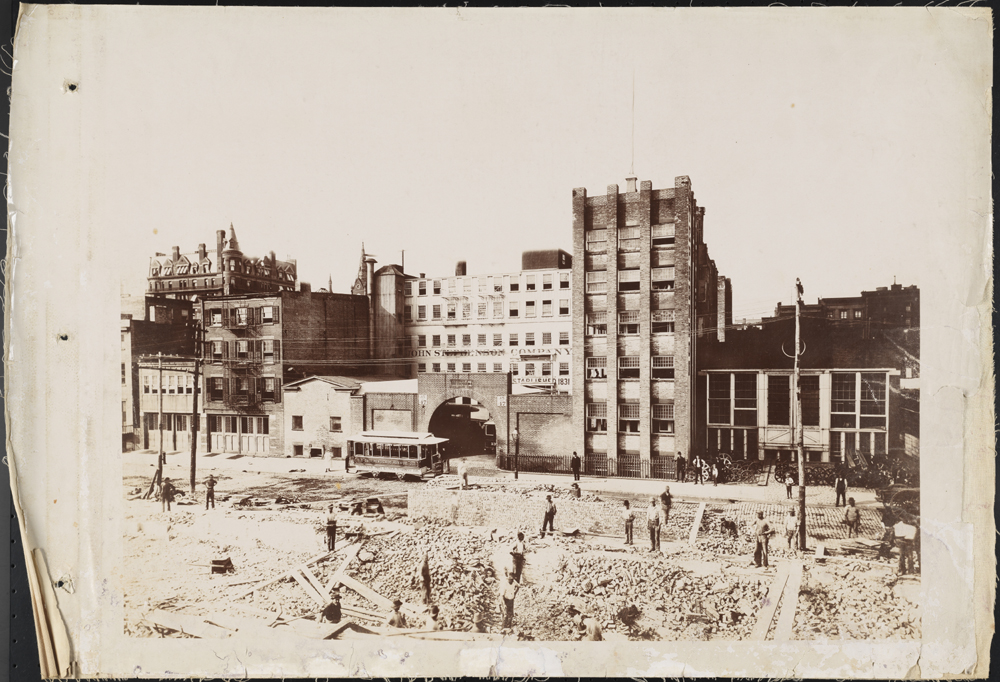 Stephenson built his factory on 27th Street between Madison and Fourth Avenues, opposite the New York & Harlem Railroad depot at Fourth Avenue and 26th Street. By the time these pictures were taken, the depot had been demolished for the construction of Stanford White’s Madison Square Garden.