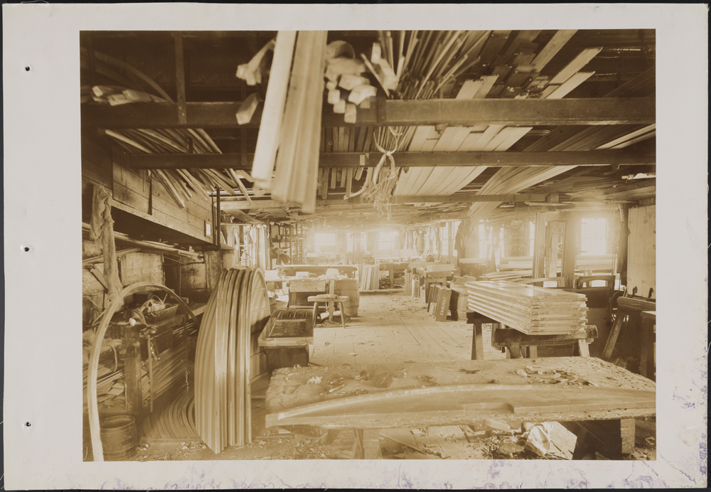 Photograph taken for the John Stephenson Company by unknown photographer. Factory [Interior of the John Stephenson Company factory at 47 East 27th Street, cabinet shop.] ca. 1889. Museum of the City of New York. 44.295.485