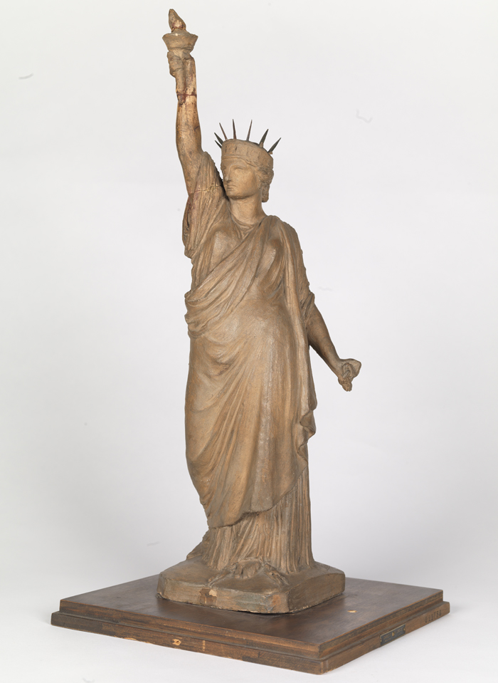 While the Museum can’t affirm or deny any of the claims about the Statue’s origins, we do our best to answer questions that involve the Museum’s collections. In this case, the Museum is lucky enough to have have two early maquettes, or a small preliminary models, similar to an artist’s sketch, by Auguste Bartholdi.