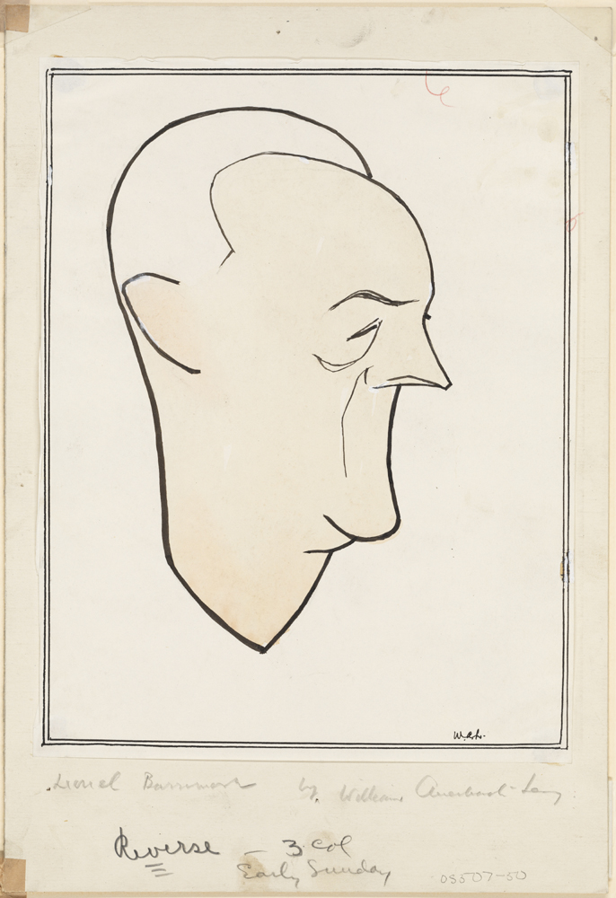 Harris was not the only person so enamored of his caricature that he requested to buy it outright from Auerbach-Levy. The journalist H. L. Mencken took to his caricature and wrote in a letter to Auerbach-Levy: “I like the caricature very much. It is grotesque and yet it does justice to my underlying beauty. Needless to say, I’ll be delighted to have the original, if it still exists.”Auerbach-Levy’s talents became so well-known, he was even commended in a New York Times article that had nothing to do with him. Critic Alexander Woollcott praised the performance of entertainer Cecilia Loftus in the April 10, 1938 article “Cissie Loftus – As Ever”: “You see most of what are palmed off on us as imitations are doubly that. They are really imitations of imitations. The true gift of caricature is rare. But once some one born with it – a Max Beerbohm, let us say, or a Frueh or an Auerbach-Levy….”