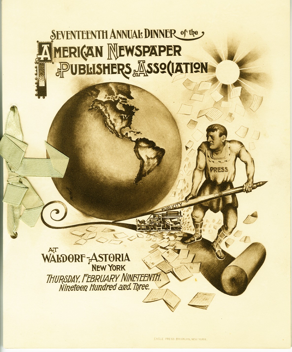 American Newspaper Publishers Association Dinner Program, 1903, in the Collection on Special Dinner Events. Museum of the City of New York, 42.250.77A.