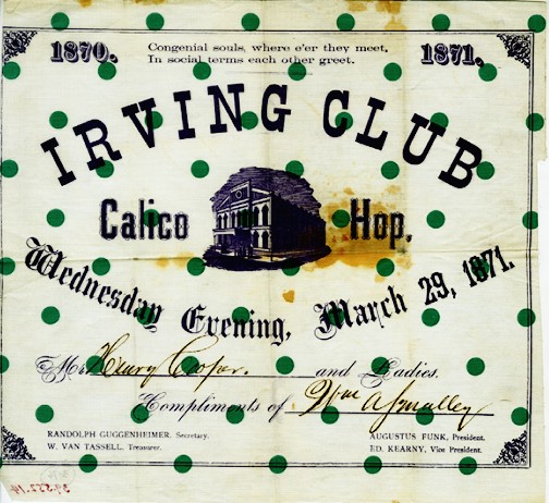Irving Club Calico Hop, 1871, in the Collection on Social Events. Museum of the City of New York, 39.552.14.