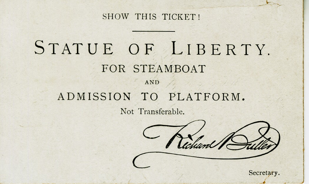Admission Ticket to Viewing Platform for Statue of Liberty Dedication Ceremonies, 1886, in the Collection on Civic Events. Museum of the City of New York, 48.176.41