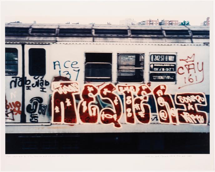 When graffiti first began to appear on subway cars in New York City in the late 1960s, Jack Stewart (1926-2005) became one of the first, along with Jon Naar, to photograph and document it. From late 1972 through early 1973, he photographed subway cars every weekend, documenting the rapidly evolving style of the graffiti writers.