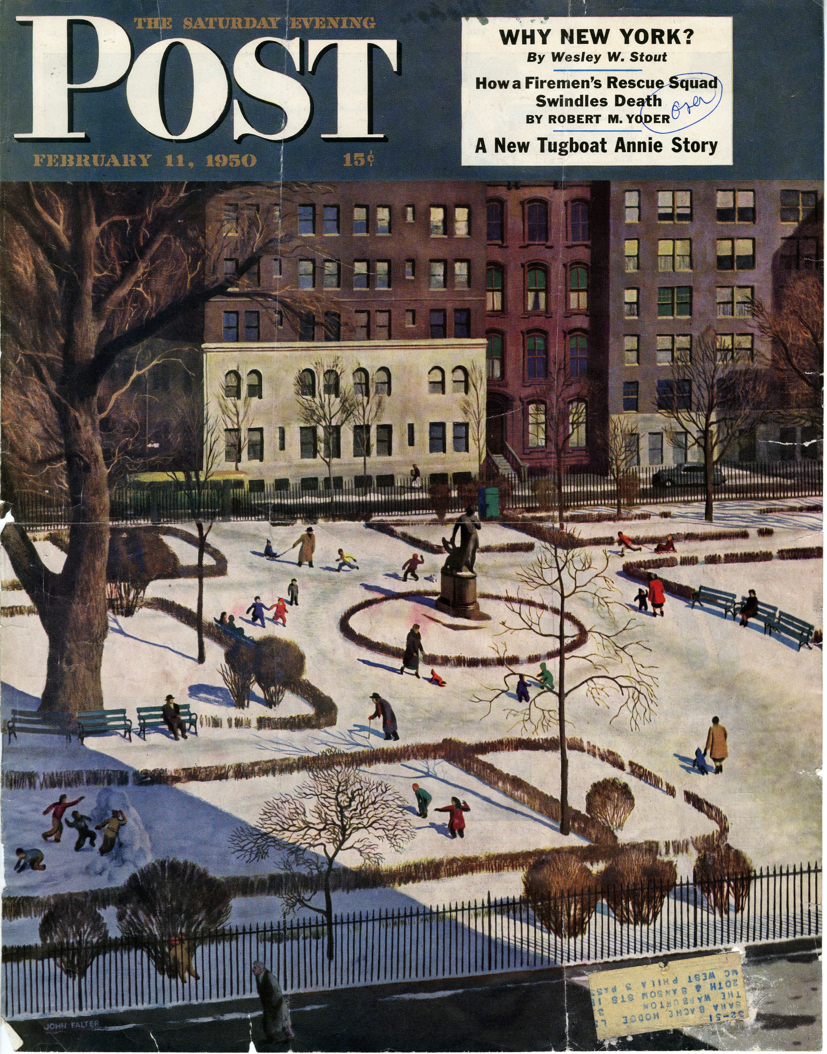 Gramercy Park by John Falter (1910-1982), cover of Saturday Evening Post, February 11, 1950, in the Dorothy Dignam Collection on Gramercy Park. Museum of the City of New York. PRO2014.3, folder 1.