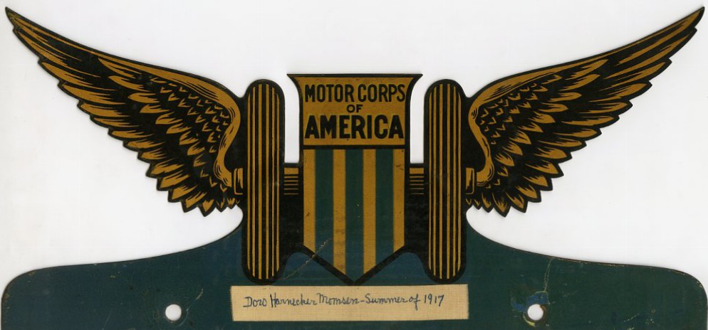 In response to World War I women began to take on new responsibilities in the war effort. The Motor Corps of America provided the opportunity for women to learn to drive and maintain vehicles. Here we see buttons and signage from a New York City Motor Corps volunteer named Dorothea Harnecker, donated to the City Museum by her daughter Mrs. Beatrice Stone.