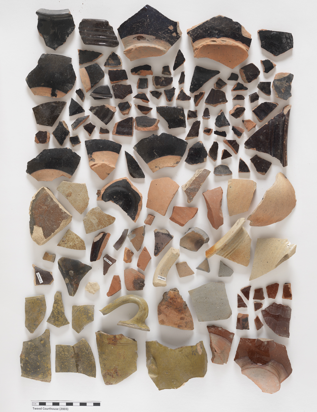 Fragments from a wide range of stoneware and earthenwares. These kinds of vessels, when intact, were commonly imported to New York from England and Germany, as well as made locally.