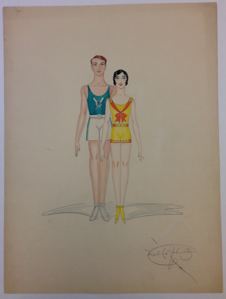 I include the swimmers below because they feature one of the few renderings Johnston did of a man. The Museum’s collection of Johnston’s work is almost exclusively designs for women.  I don’t know if this was a reflection of her specific focus or if perhaps her designs for men exist elsewhere.