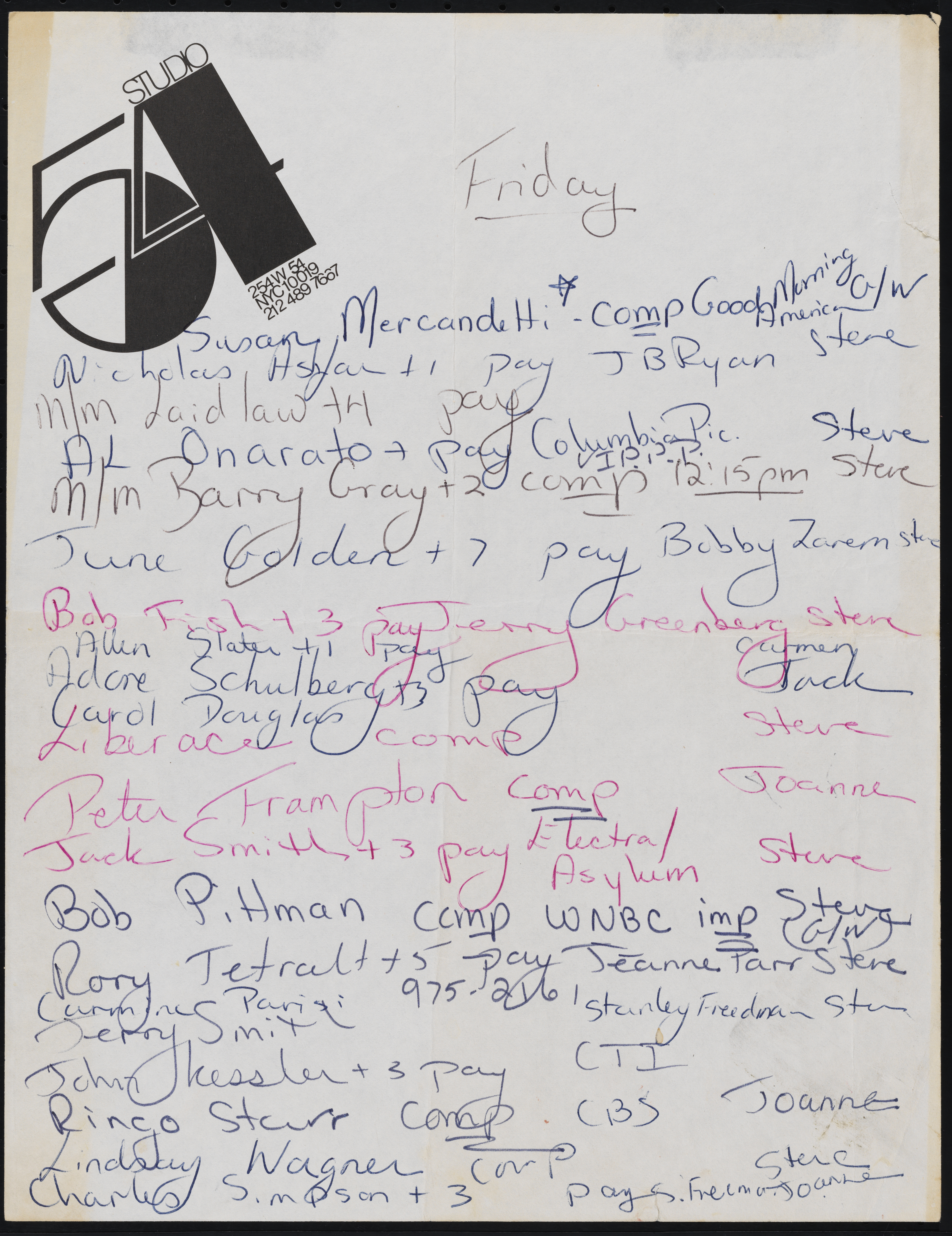 Studio 54 guest list, 1978, in the Collection on Culture and Entertainment. Museum of the City of New York. 2015.7.2.