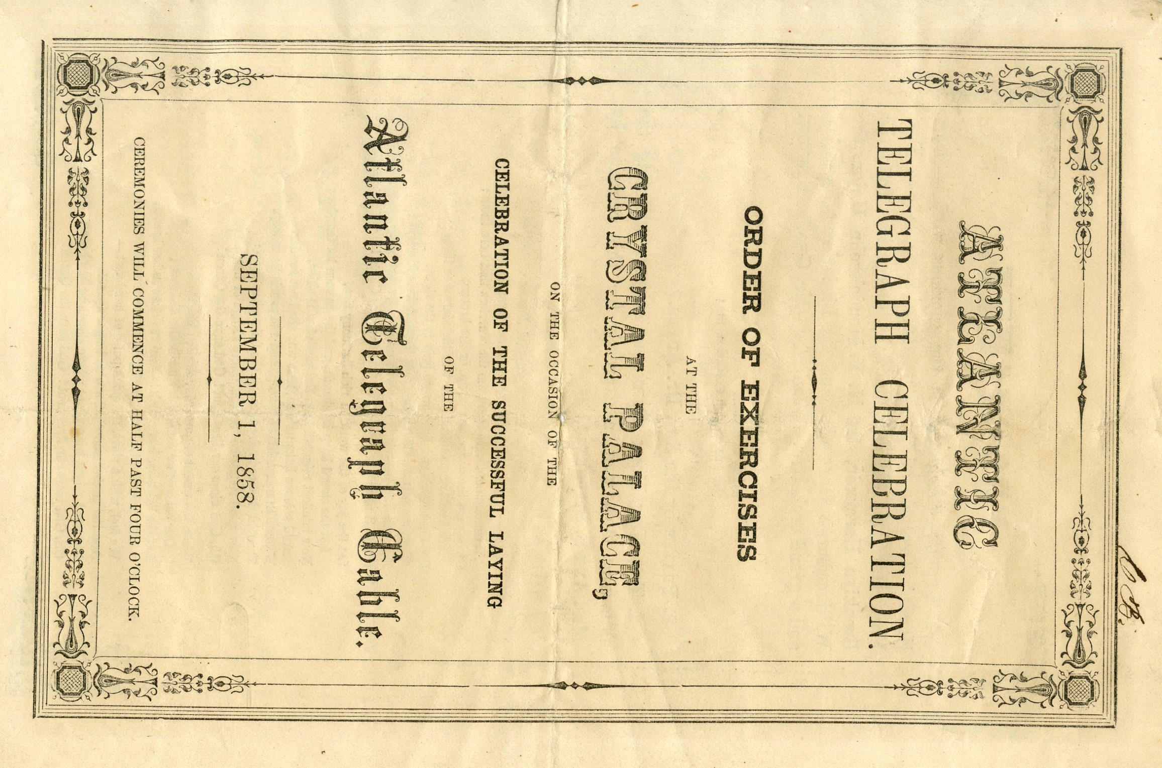 Atlantic Telegraph Celebration. Order of Excercises at the Crystal Palace, 1858, in the Collection on Civic Events. Museum of the City of New York, F2014.18.663.