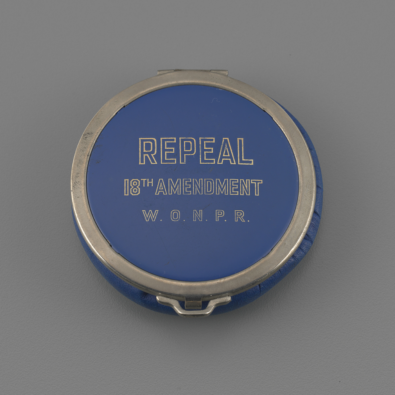 “Repeal 18th Amendment W.O.N.P.R.” Makeup Compact, Women’s Organization for National Prohibition Reform, ca. 1929-1933. Museum of the City of New York. 56.71.9.