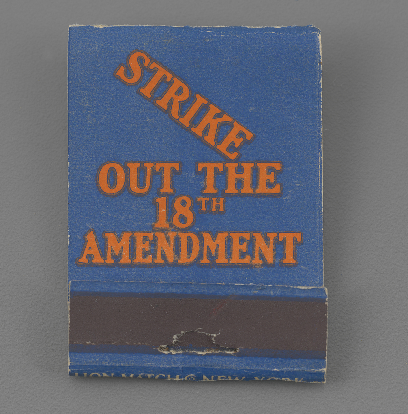 “Strike out the 18th Amendment” Matchbook, Women’s Organization for National Prohibition Reform, ca. 1929-1933. Museum of the City of New York. 56.71.29.
