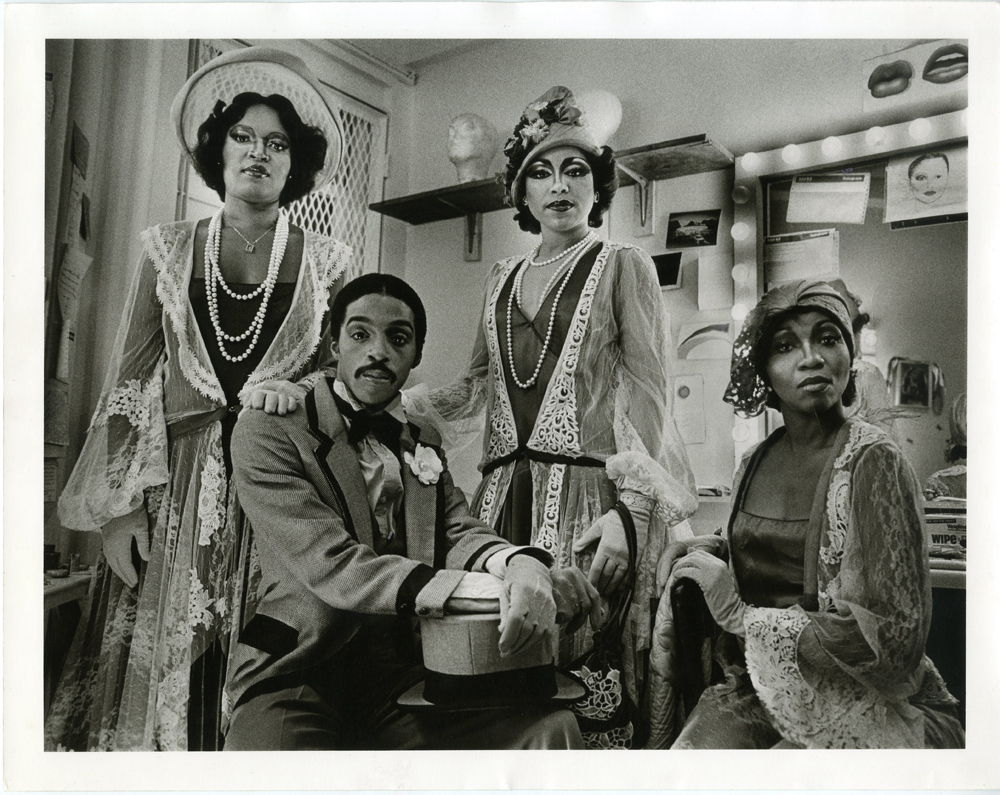 Unknown. [Cast of Eubie! backstage.] 1978. Museum of the City of New York. 83.60.18. – {PICTURED -Alaina Reed, Lonnie McNeil,Ethel Beatty and Lynnie Godfrey —— Cast. The original cast of Eubie! included and all black cast consisting of 12 performers and 9 musicians. The performers were Ethel Beatty, Terry Burrell, Leslie Dockery, Lynnie Godfrey, Gregory Hines, Maurice Hines, Mel Johnson Jr., Lonnie McNeil, Janet Powell, Marion Ramsey, Alaina Reed, Jeffery V. Thompson.
