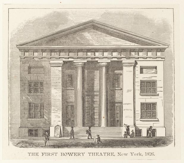 Engraving. The First Bowery Theatre, New York, 1826. Undated. Museum of the City of New York. F2011.37.8.