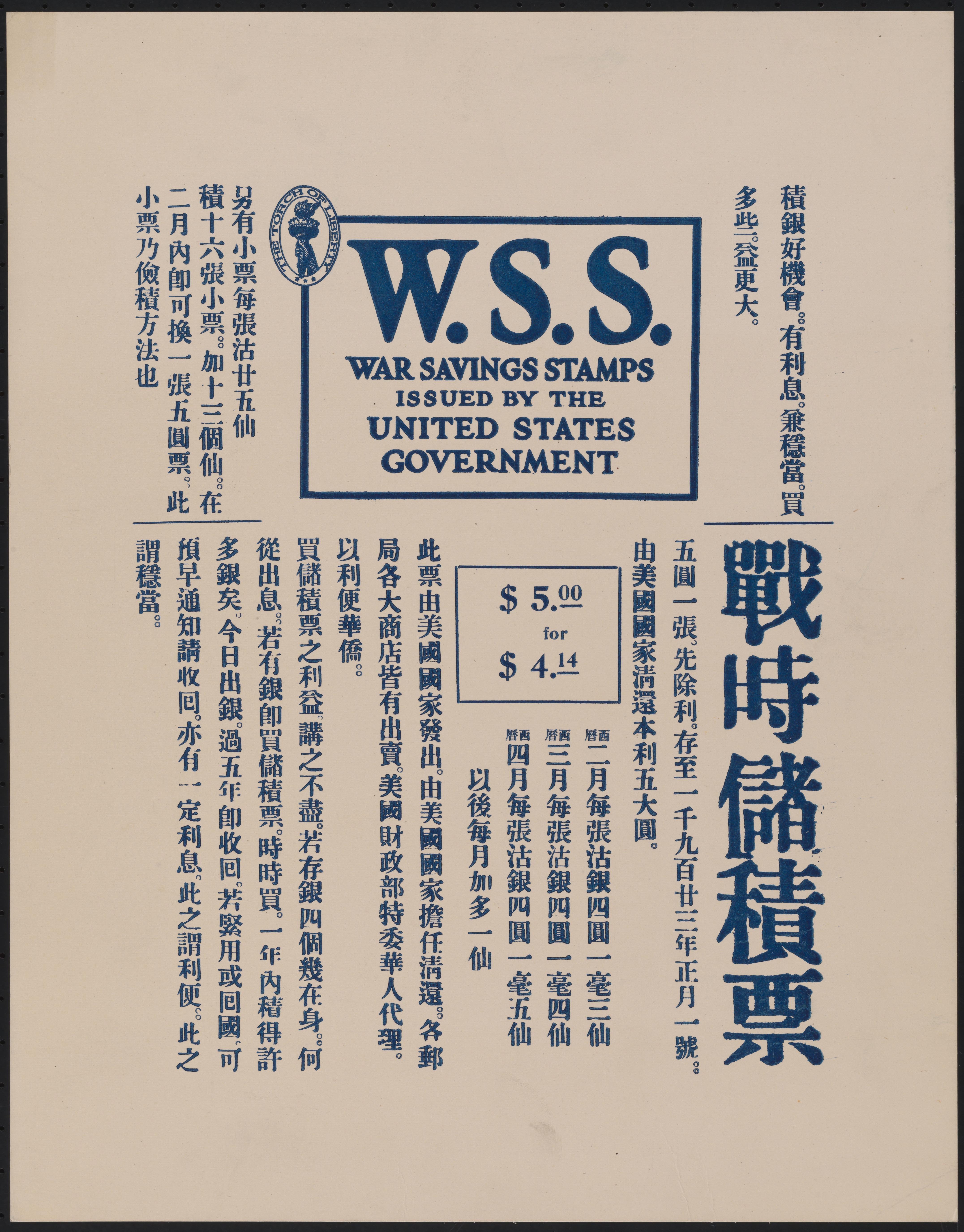 United States Department of the Treasury. War Savings Stamps [Chinese]. ca. 1917. Museum of the City of New York. 39.243.90
