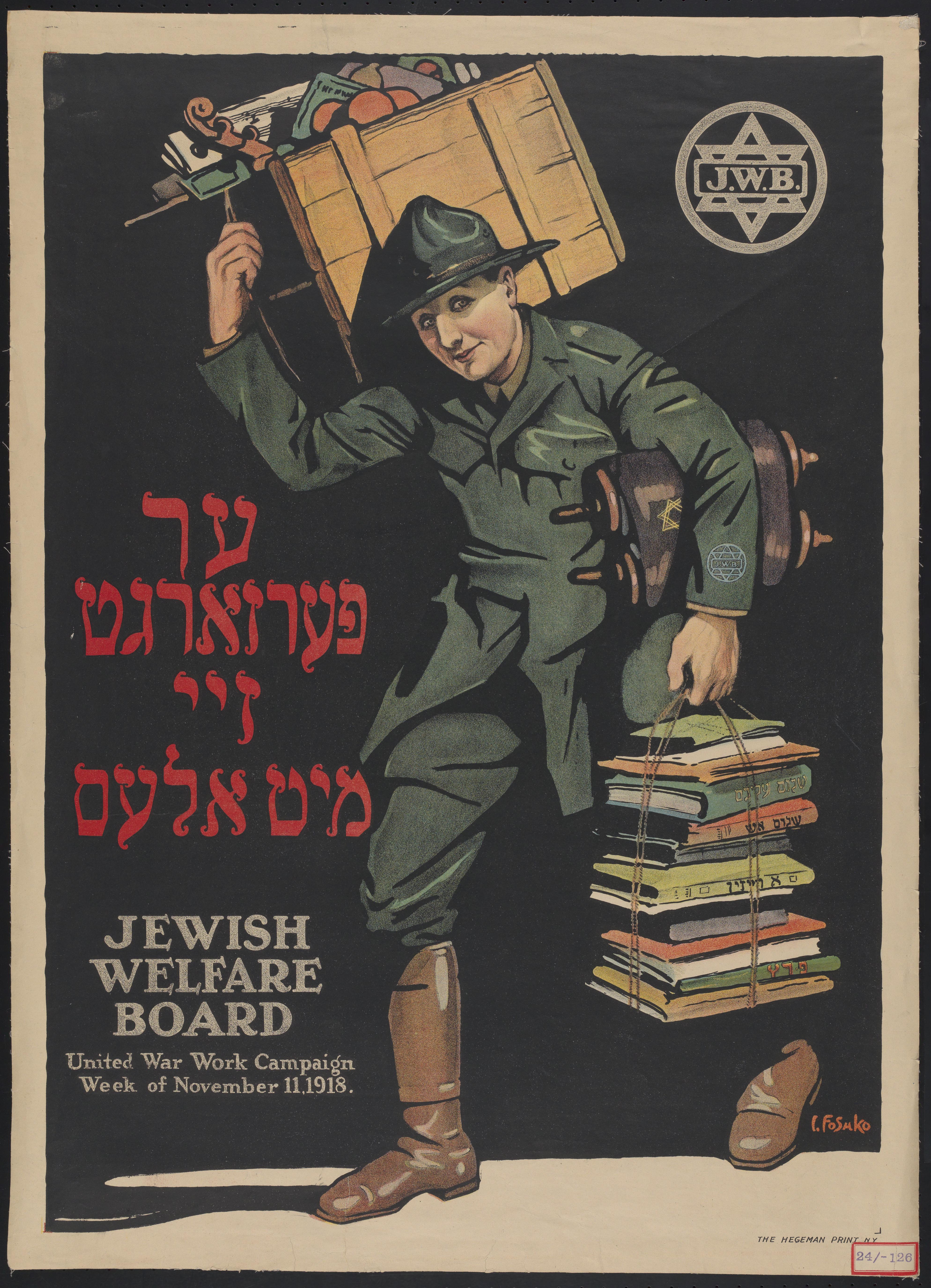 The United War Work Campaign coordinated wartime fundraising for seven independent welfare societies: the Young Men’s Christian Association and the Young Women’s Christian Association, National Catholic War Council (Knights of Columbus), the Jewish Welfare Board, War Camp Community Service, American Library Association, and the Salvation Army. Each organization published posters appealing to its target audience to contribute to the common cause. Women were essential to the home front – they filled jobs left by soldiers, volunteered for services like the Motor Corps of America, and led the rationing effort at home.